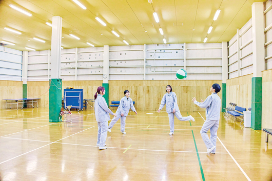 社内施設が充実!社内に多目的ホール、テニスコートなどがあり昼休みに、バスケットボール、バトミントン、卓球、テニス、モルックなどができます。