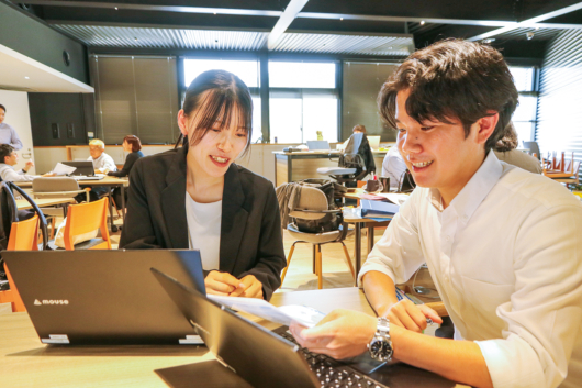 個人の目標が、会社の方向性に貢献するために、毎月社員同士で個人目標の共有やアドバイスを行っています。